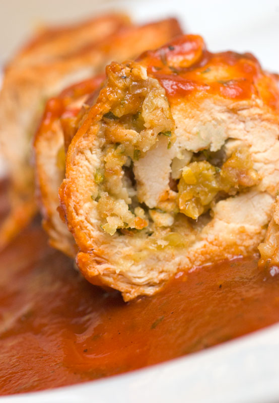 After all, the stuffing consists of such wonderfulness as plump golden raisins, toasted pine nuts, fresh parsley, lemon zest, flavorful garlic, bread, and Parmigiano-Reggiano cheesy goodness.