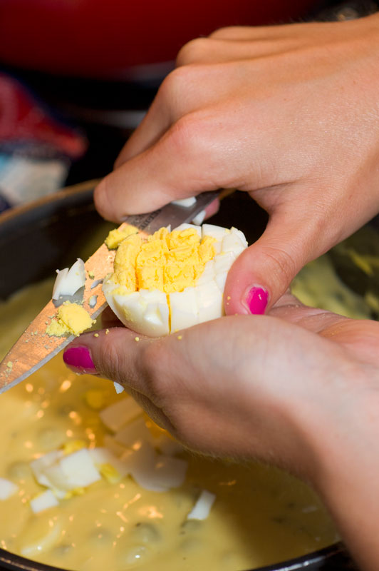 While Suzie diced the boiled egg.